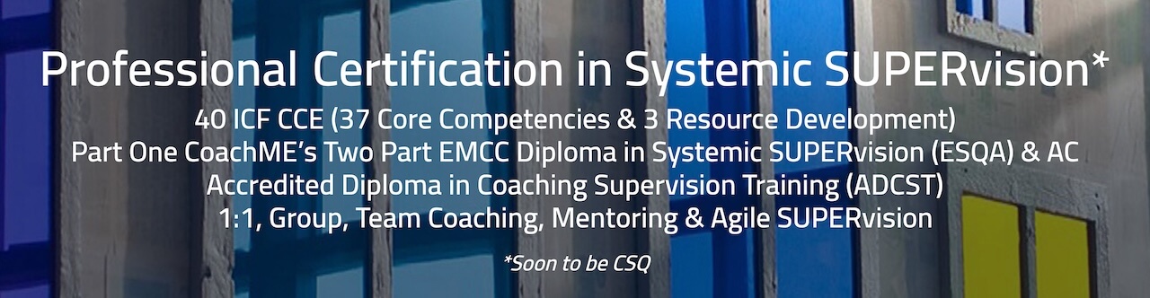 This programme is the foundation of the CoachME Postgraduate Level Diploma in SUPERvision when successful completion provides the designation of CoachME SUPERvisor (CMS). The Diploma is an ESQA programme through EMCC. Full details of the Diploma can be found here: